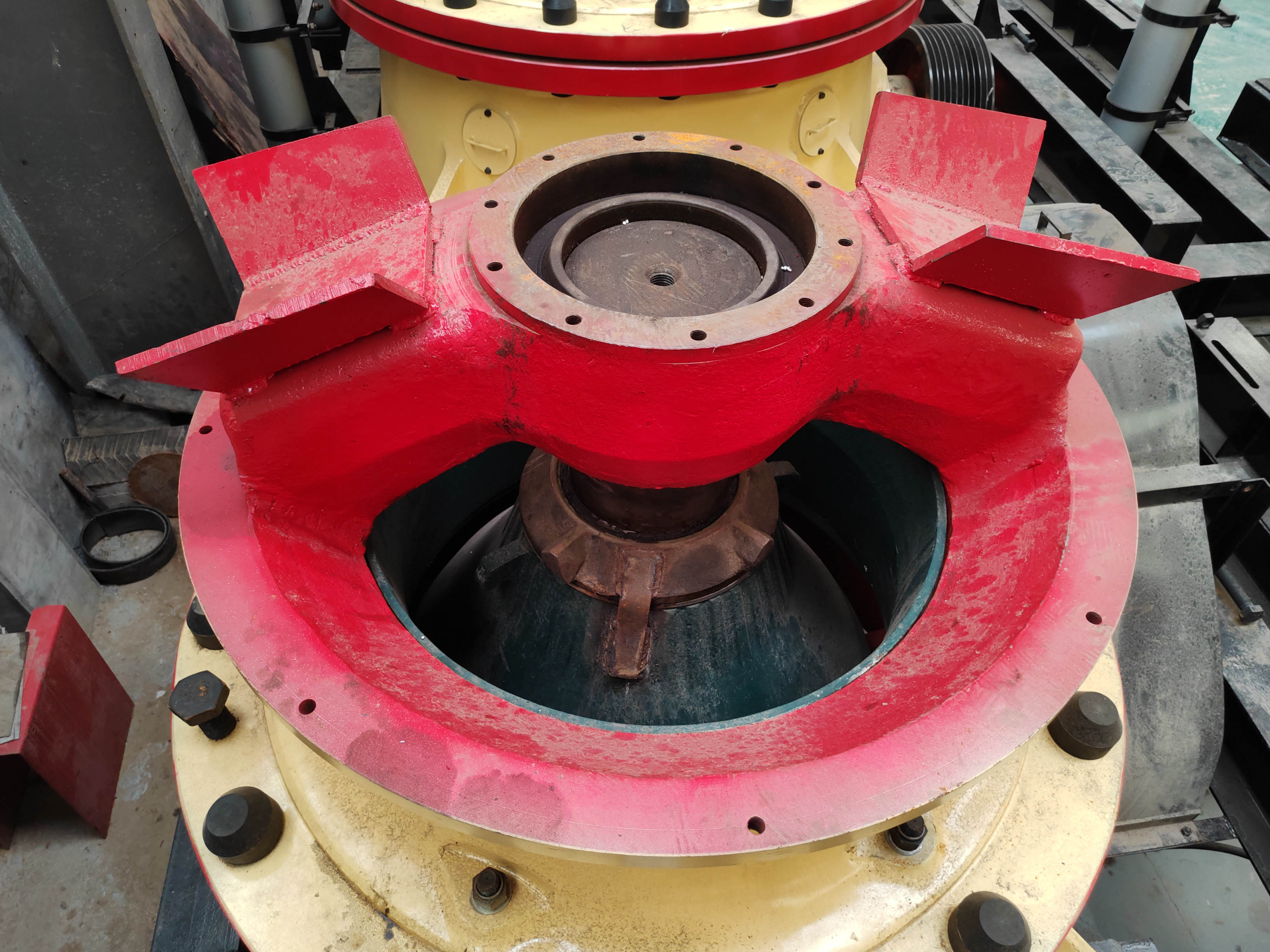 确保设备零部件齿轮间互相啮合,延长齿轮的使用周期;改进设备构造,使设备主轴与偏心轴套和衬套间的数值处在合理范围之内;设备尽量放置在较为平稳的地方,在设备的机架底座上还可以安装上减震装置;平常多注意对圆锥破碎机的维护保养,定期检查设备零部件的具体使用情况,及时更换维修。
